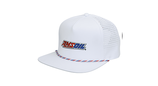 Could there be a better hat for a gearhead? Your enthusiast will stand out from the crowd with this white flat-brim podium braided cap featuring the AMSOIL logo embroidered on the brow. One size fits most with adjustable snapback closure.