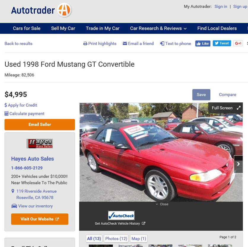 Now for the disclaimers: (1) this is a list, not THE list, (2) specifications are not indicative of the car’s current capabilities and (3) reliability and cost of ownership did not factor into the list. Click the link above each image for details on a used model that’s for sale.