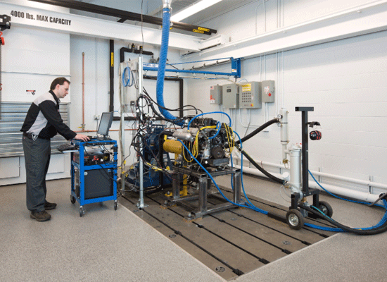 We test everything from passenger car engines to powersports equipment to lawn and garden equipment in the dyno. Not long ago, we tested a racing engine you could hear nearly on the other side of the building.