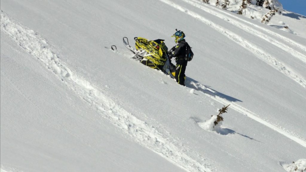 If you bury your sled in a tree well or other area with no exit, you’ll have to use your shovel. Make a path, free the track and then hit the throttle.