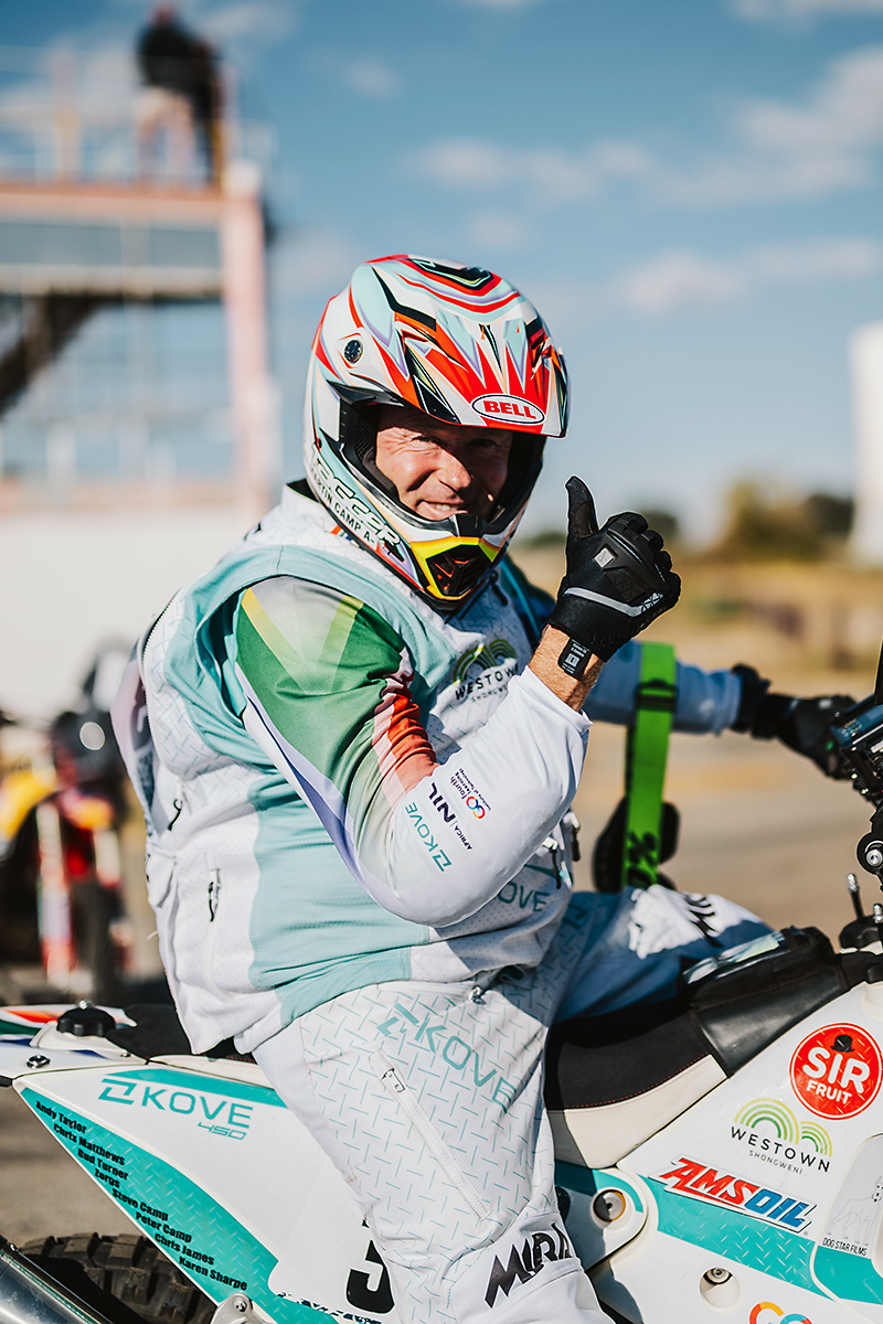 Camp was introduced to racing at a young age, competing with four brothers around South Africa’s Valley of a Thousand Hills and supported by an adventurous father—a wildlife park ranger and car racer. He became a sponsored enduro racer at age 16 and consistently finished in the top five throughout his teens. As an adult, he has continued chasing podiums worldwide, taking him to 54 countries over more than four decades.