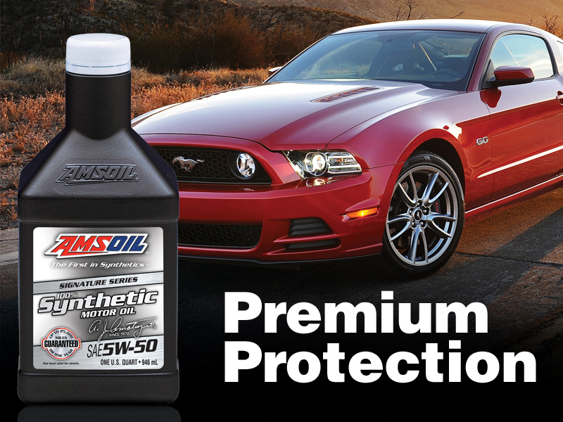 AMSOIL has expanded the Signature Series line to include a robust 5W-50 synthetic motor oil formulated specifically for high-horsepower Ford Mustang engines. Signature Series 5W-50 Synthetic Motor Oil provides top-of-the-mark protection and performance that customers expect from Signature Series, and it is excellent for all Mustang engines calling for a 5W-50 viscosity.