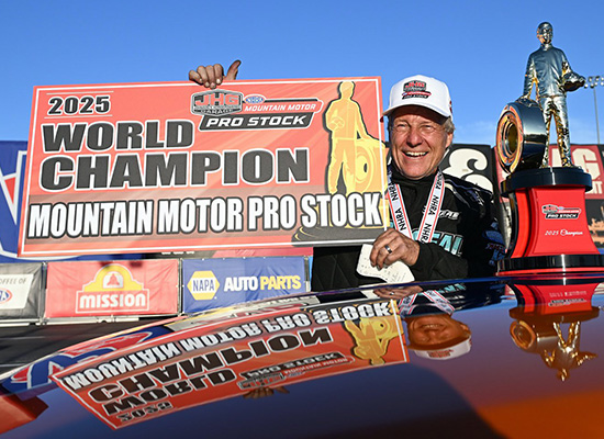 And that’s what he has done. DeFlorian’s 2025 NHRA Mountain Motor Pro Stock world championship was the culmination of nearly five decades of perseverance, craftsmanship and belief. From his first runs at Gateway Motorsports Park in 1977 as a 16‑year‑old bracket racer to hoisting the white hat at his home track in St. Louis, DeFlorian’s career followed a path defined by hard work, patience and perseverance.