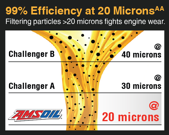 Efficiency is a filter’s ability to capture contaminants. The more efficient a filter is, the more contaminants it will remove from oil. AMSOIL Oil Filters provide a filtering efficiency in accordance with industry standard ISO 4548-12 of 99% at 20 microns – one of the best ratings on the market. Some competitors also claim 99% efficiency, but at larger particle sizes of 30 to 40 microns.